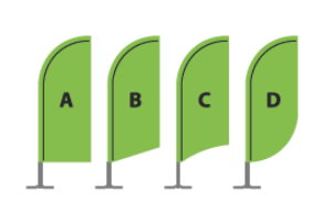 vlajky (Beach flag), muší křídla (Fly wing), které jsou skvělým reklamním prvkem poutající pozornost i z větší dálky,